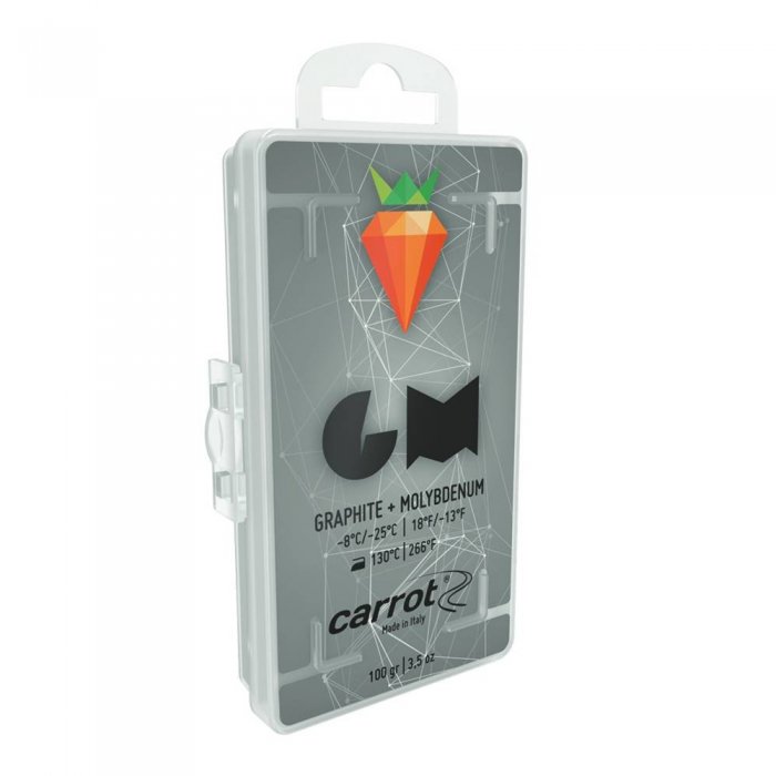 Compusul de ceară Carrot Graphite și Molybdenum reduce frecarea electrostatică în zăpada rece și uscată. Este ideală pentru temperaturi între -8°C și -25°C; de asemenea, poate fi folosită pentru zăpadă proaspătă sau veche de câteva zile, cât și pentru zăpadă artificială.