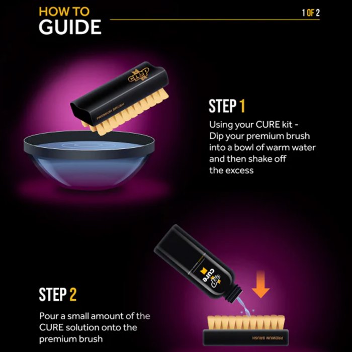 Solutia de curatare Cure de la Crep Protect are o formula naturala in proportie de 98%, special conceputa pentru a indeparta murdaria si petele de pe incaltaminte. Recipientul are optiune de reumplere, reducand astfel impactul asupra mediului.