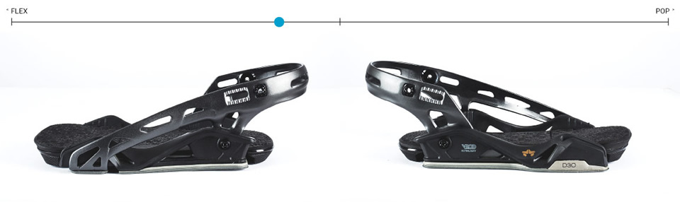Highback-ul legaturilor Flare este gandit pentru o optima transmitere a miscarii catre cantul din spate.