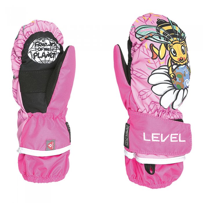 Datorita utilizarii de tesaturi reciclate si materiale organice, Level Animal Mitt ofera caracteristicile manusilor standard, dar se asigura ca amprenta ecologica este aproape de zero de la primul pana la ultimul pas al procesului de productie. Sistemul de izolare utilizeaza tehnologia Membra-therm Green pentru a face manusile impermeabile. Manseta lunga cu strap ajustabil si manseta pentru powder impiedica zapada sa intre in manusi. Design-ul este completat cu multe culori atractive si personaje interesante.