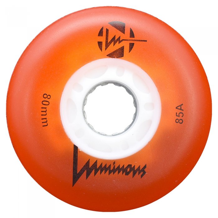 Set de 8 roti pentru role cu leduri Luminous Orange 80mm/85a. Rotile lumineaza doar folosite impreuna cu distantierii de 8mm inclusi in pachet si numai pe modele de role care folosesc suruburi de 8mm. Rotile nu necesita baterii, iar ledurile se aprind datorita distantierului care functioneaza ca un dinam si se aprind doar cand se rotesc.