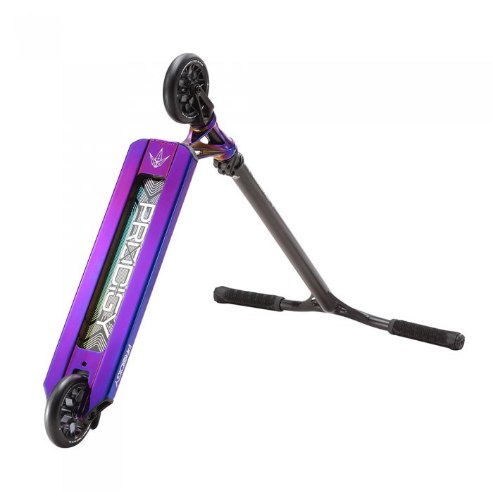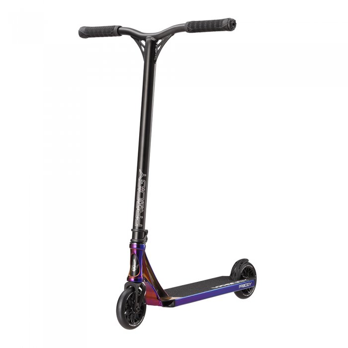 Blunt Prodigy este unul dintre cele mai cautate modele de trotineta la nivel mondial din ultimii ani. Pentru seria X producatorul a pregatit un design fresh si, bineinteles, imbunatatiri tehnice. Aceasta gama a pastrat elementele clasice Prodigy precum ghidonul usor din aluminiu Reaper V2, mansoanele moi si durabile TPR si furca Diamond cu compresie IHC. In ceea ce priveste imbunatatirile, cele mai importante sunt urmatoarele: deck-ul fabricat folosind extrudarea Extech, proces prin care s-a obtinut un profil mai mic, pereti interni mai largi si concavitate receptiva, frana V2 din nylon si o clema supradimensionata in forma de Z cu 2 suruburi de 6mm. Blunt Prodigy X este potrivita pentru riderii de nivel intermediar si avansat.